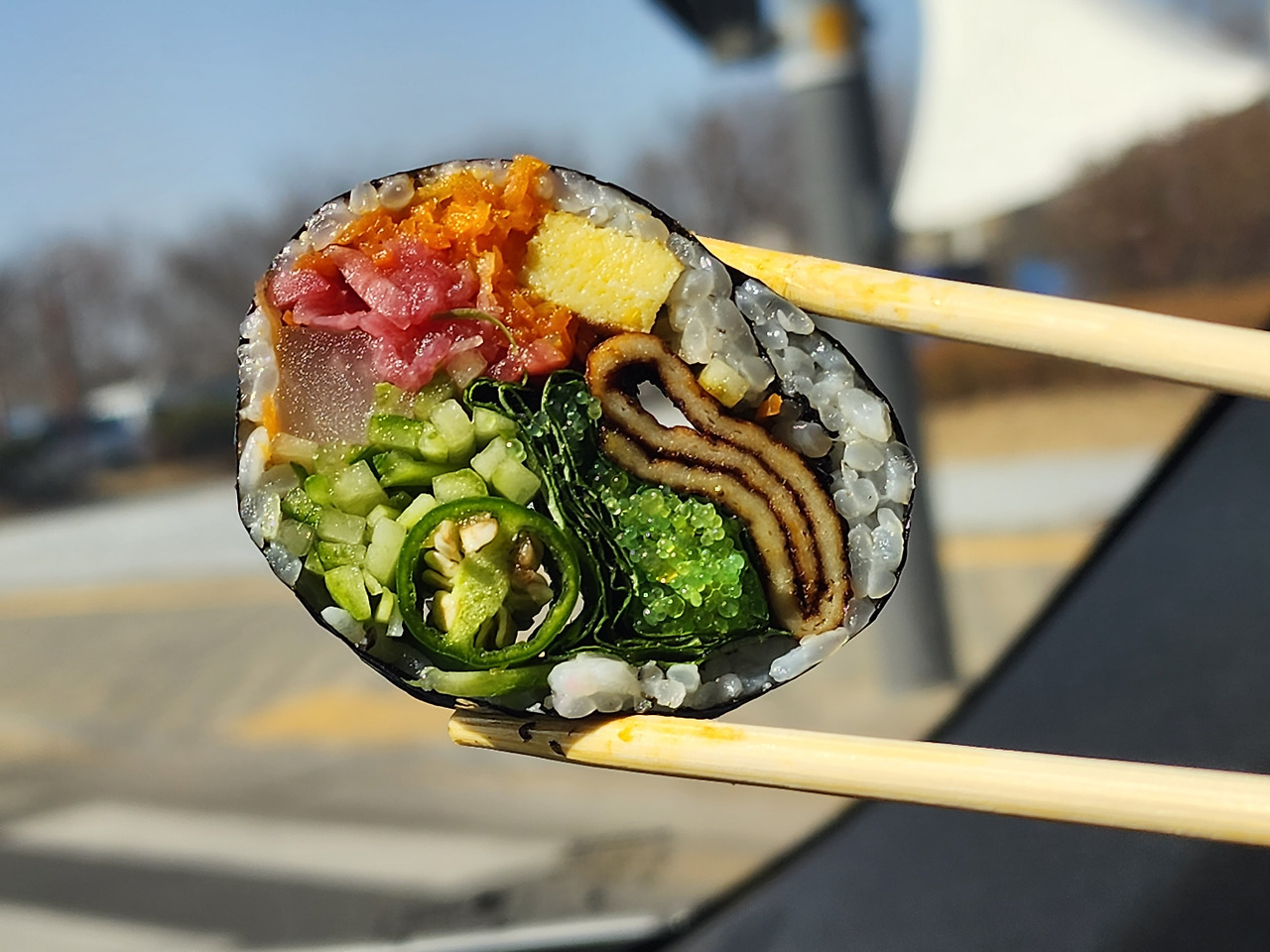Cheongna Osaek Gimbap: Spicy Cheongyang Pepper and Fish Roe Gimbap – Highly Recommended!